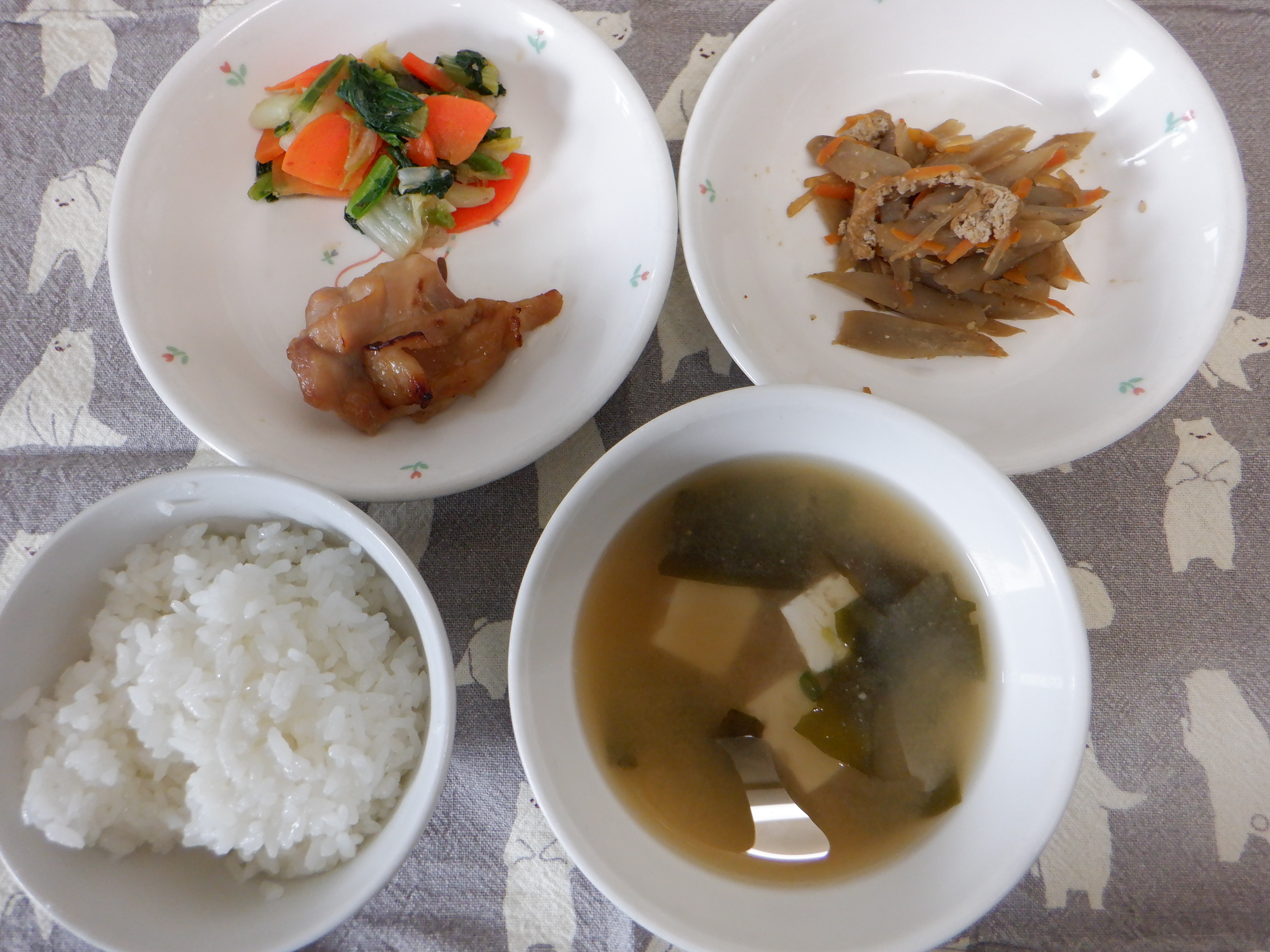 きんぴらごぼう・豆腐とわかめのみそ汁