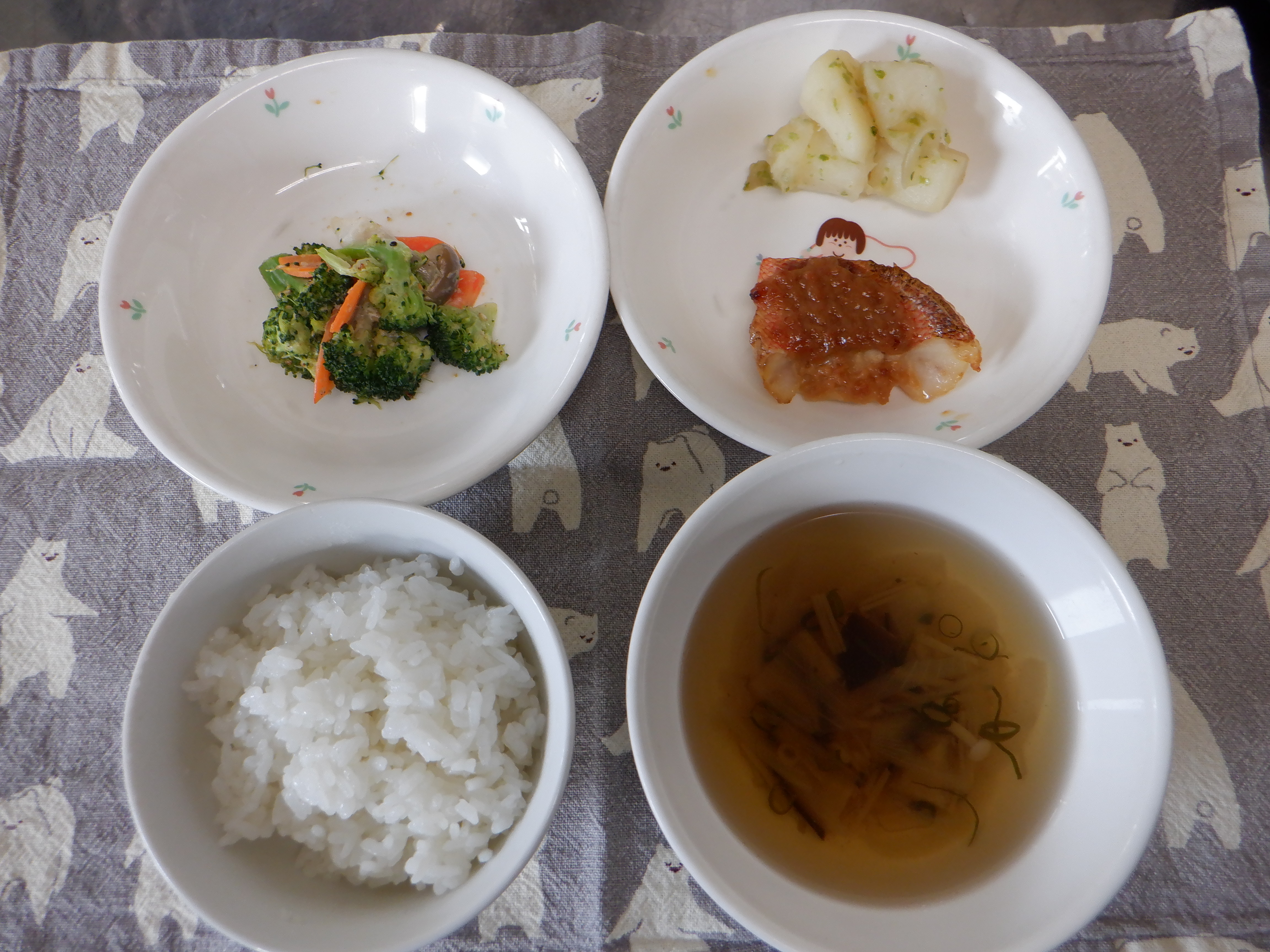 ごはん・赤魚のゆずみそ焼き・ブロッコリーのサラダ
