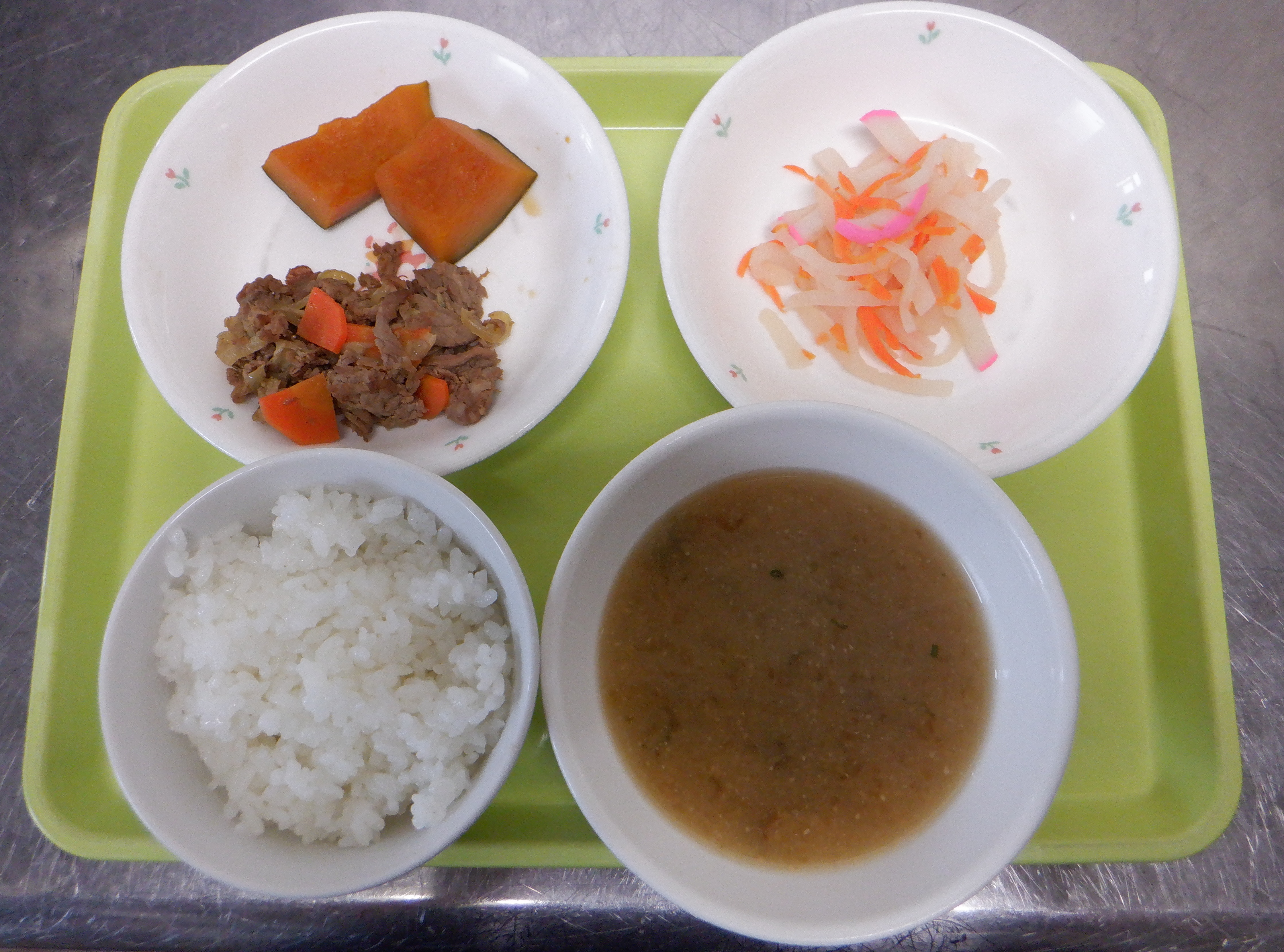 ごはん・牛肉と舞茸のカレー炒め・大根の酢の物
