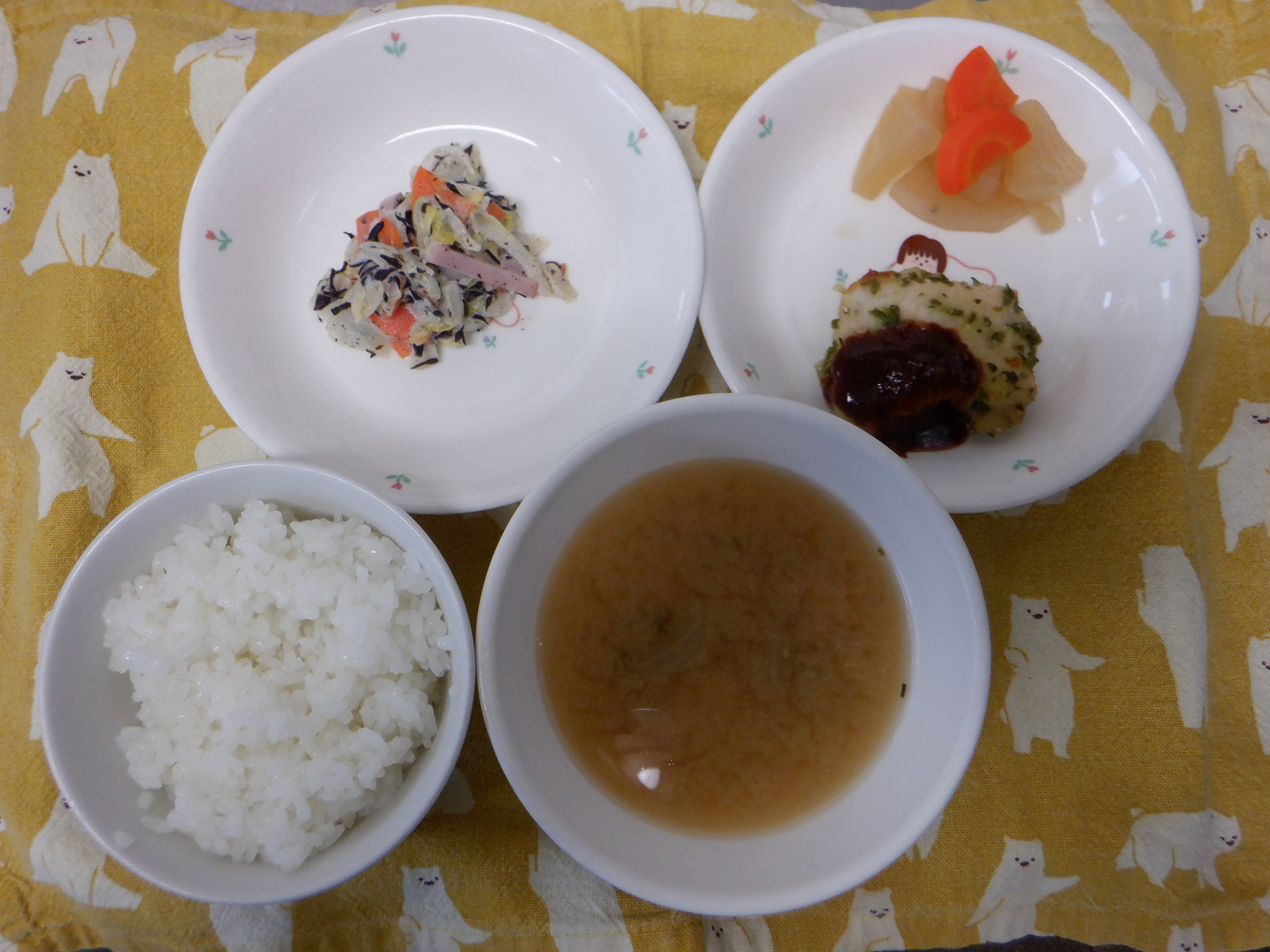 ごはん・チキンソテー・白菜とひじきのサラダ