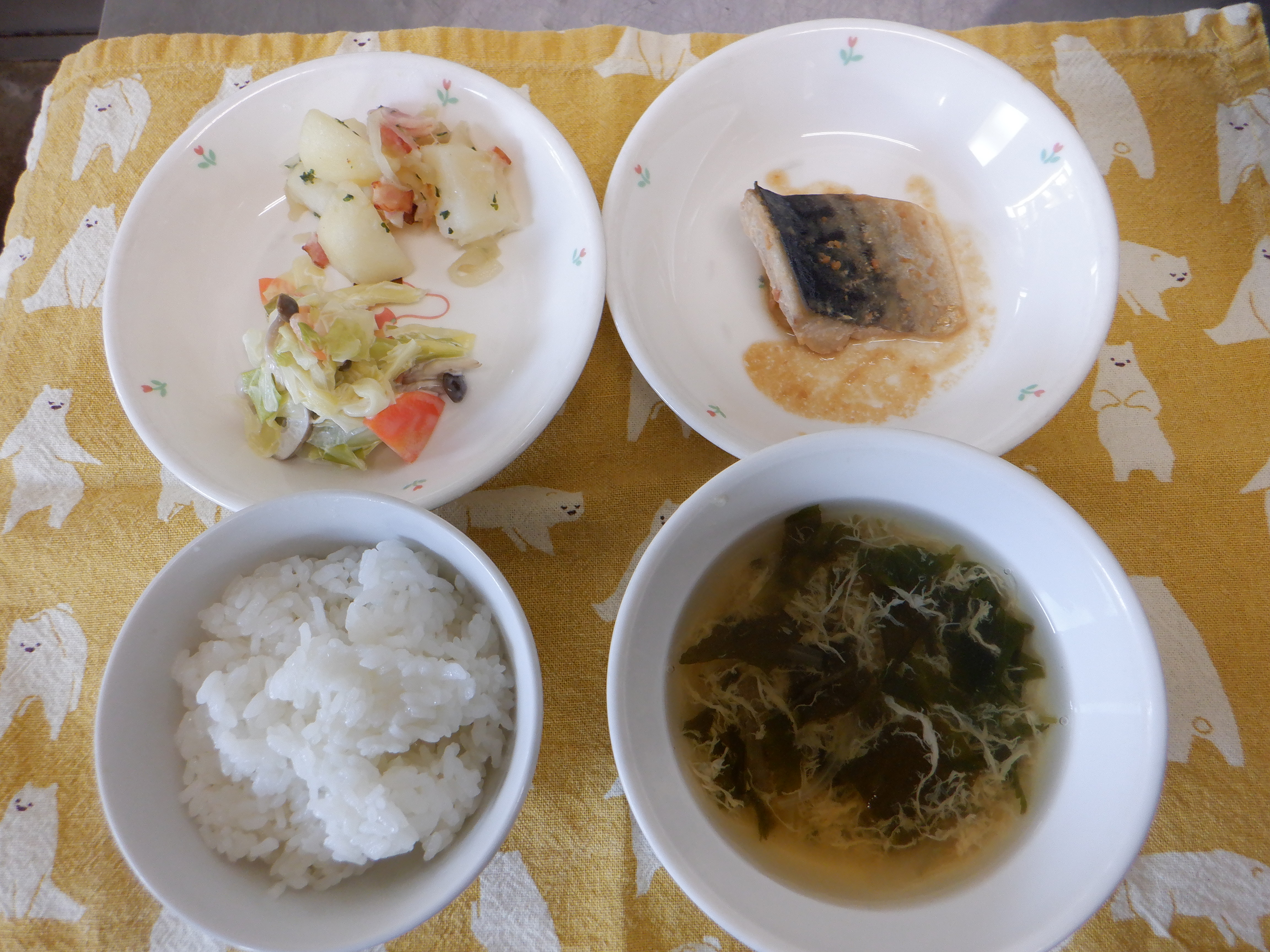 じゃが芋とベーコンの炒め物・卵とわかめのすまし汁