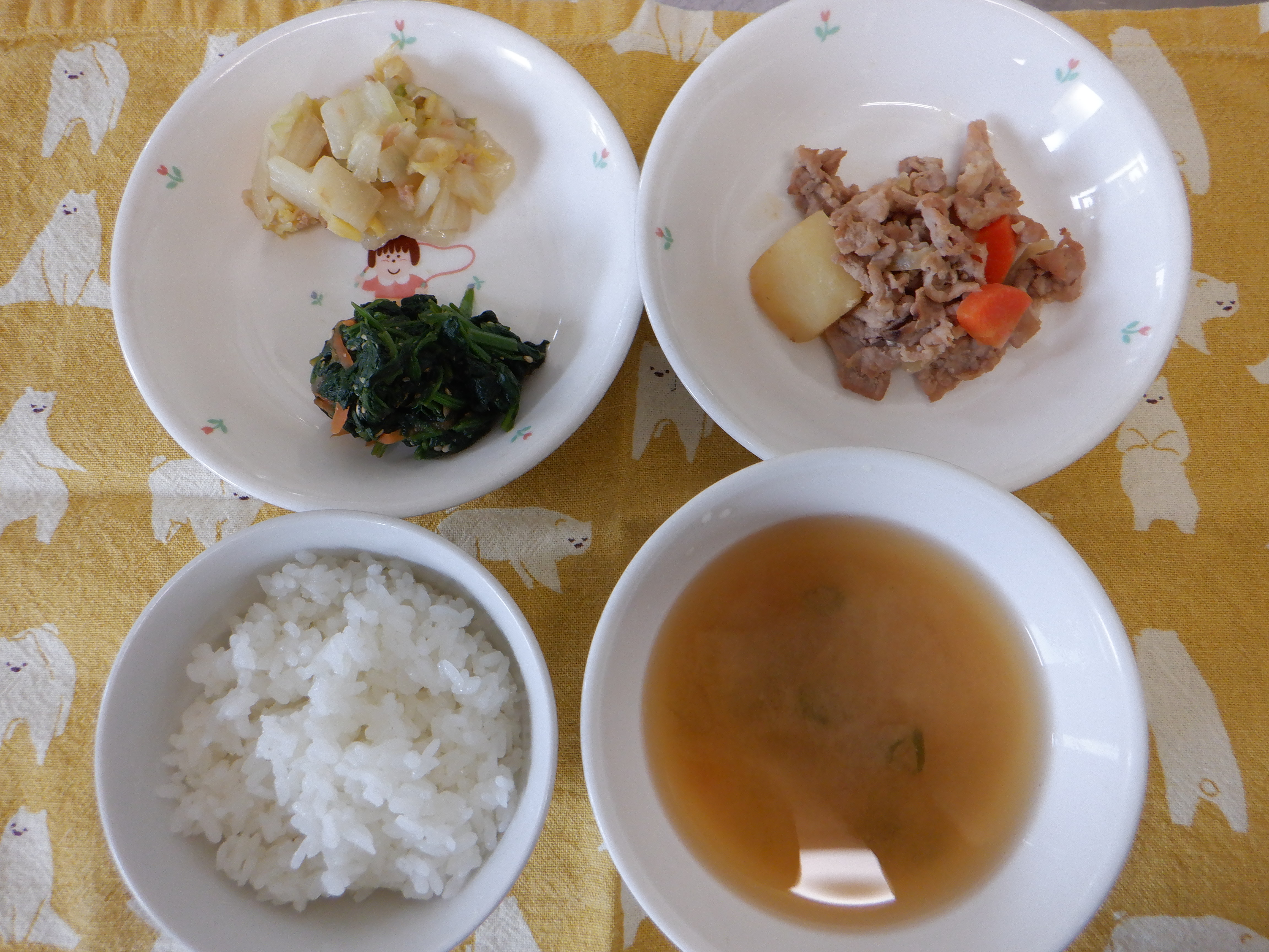 ご飯・肉じゃが・ほうれん草のゴマ和え
