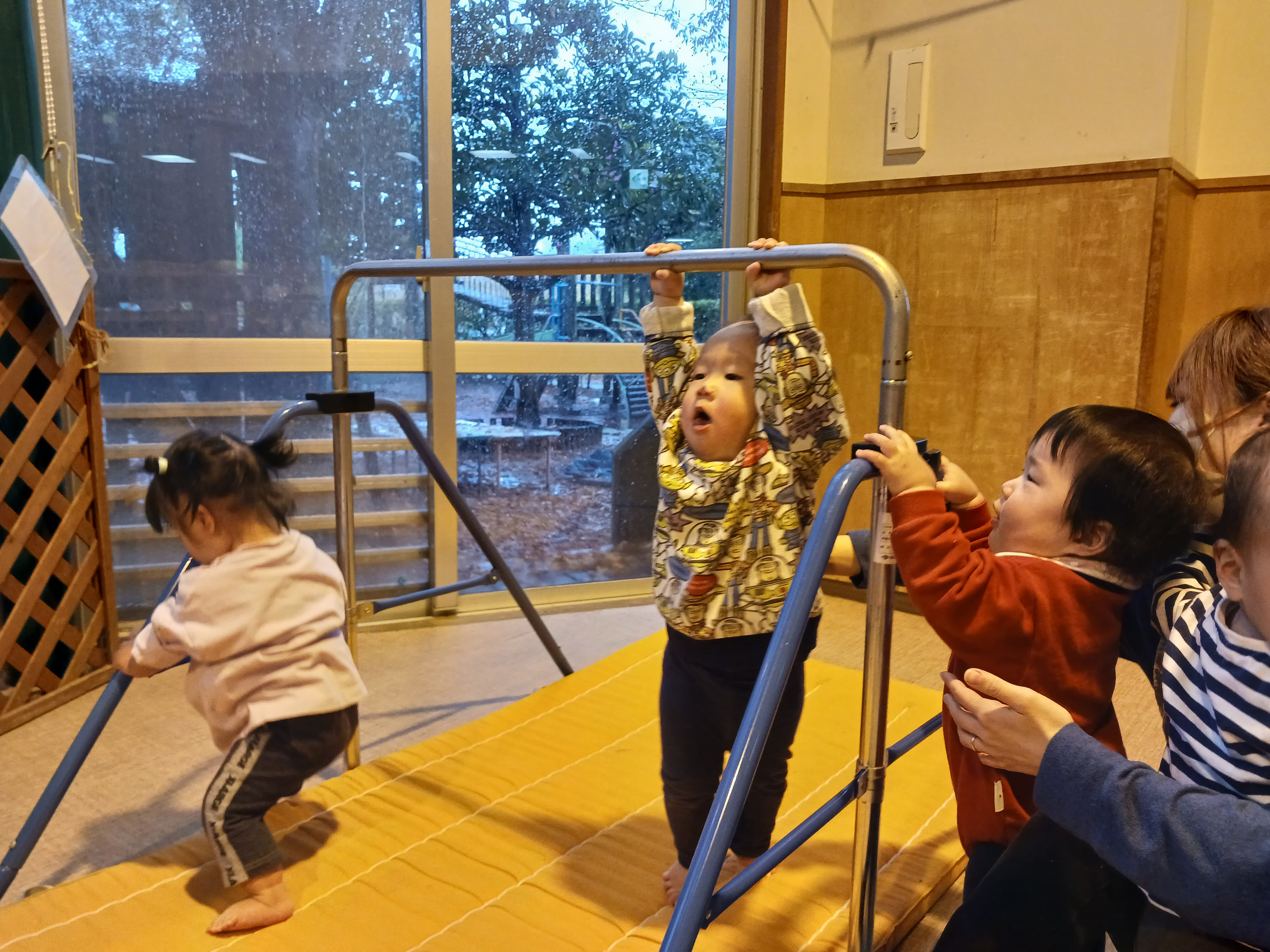 鉄棒も、自分で手を伸ばしてぶら下がろうとする姿もあり、成長にびっくり!