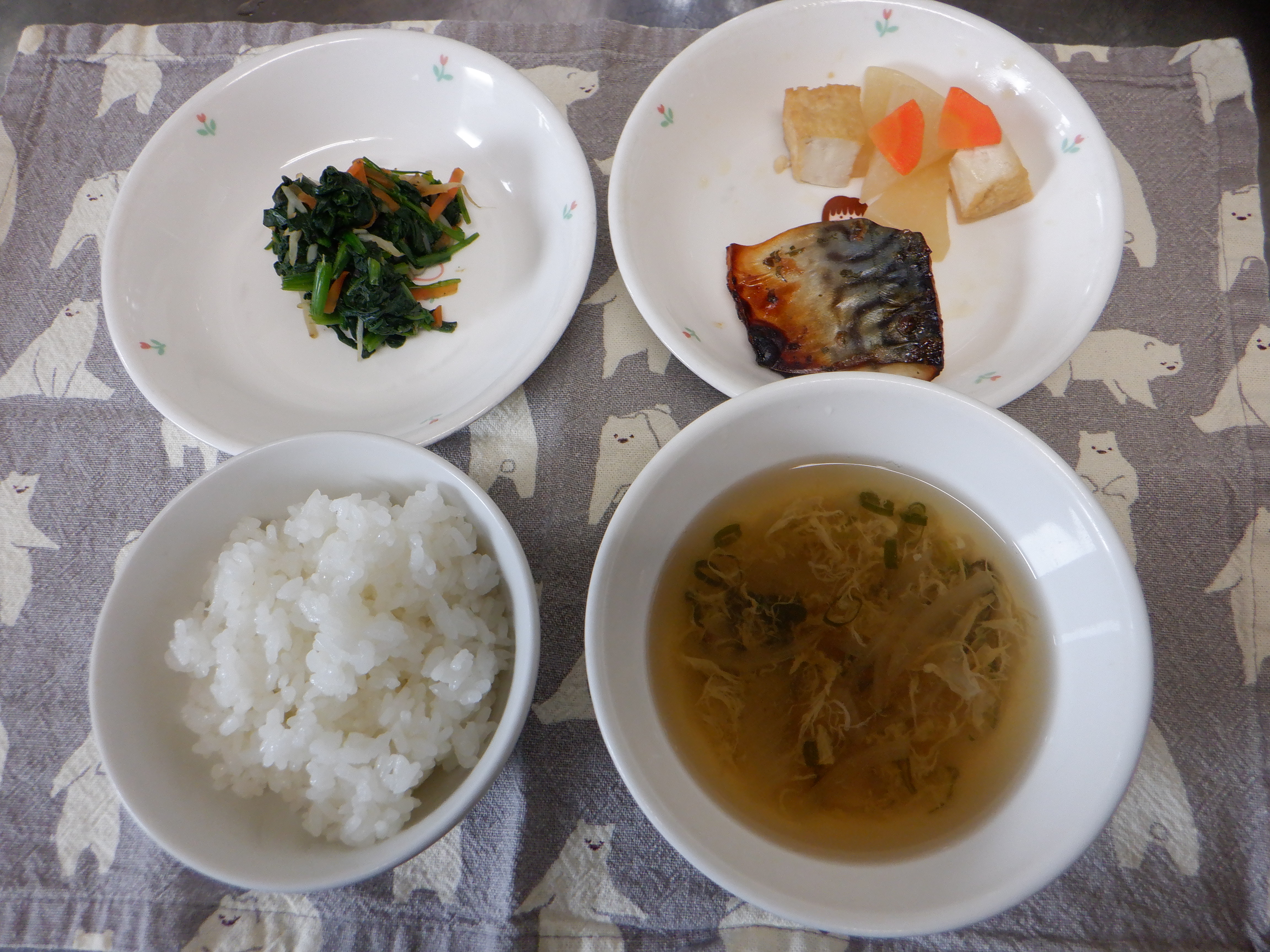 ごはん・鯖の梅しそ焼き・ほうれん草の和え物