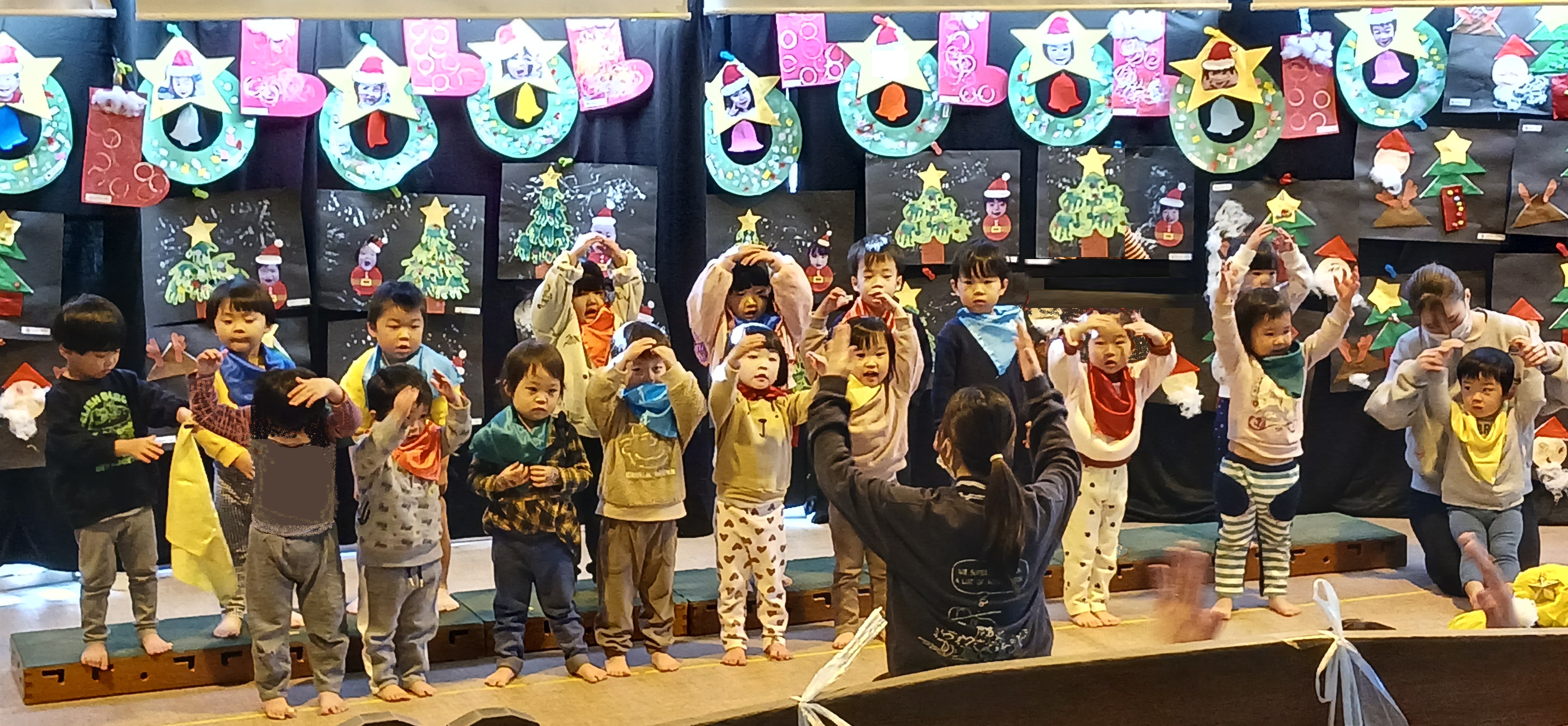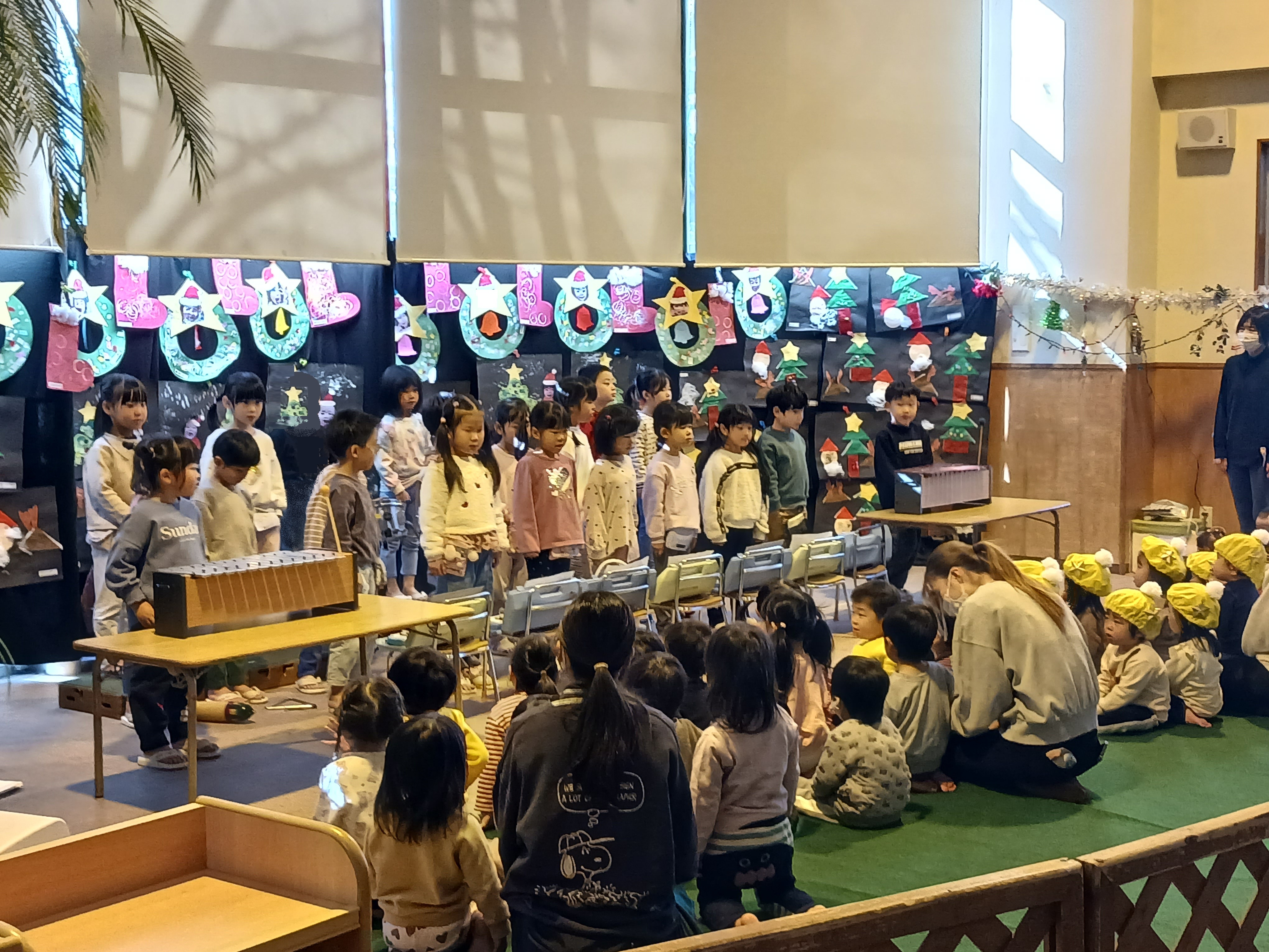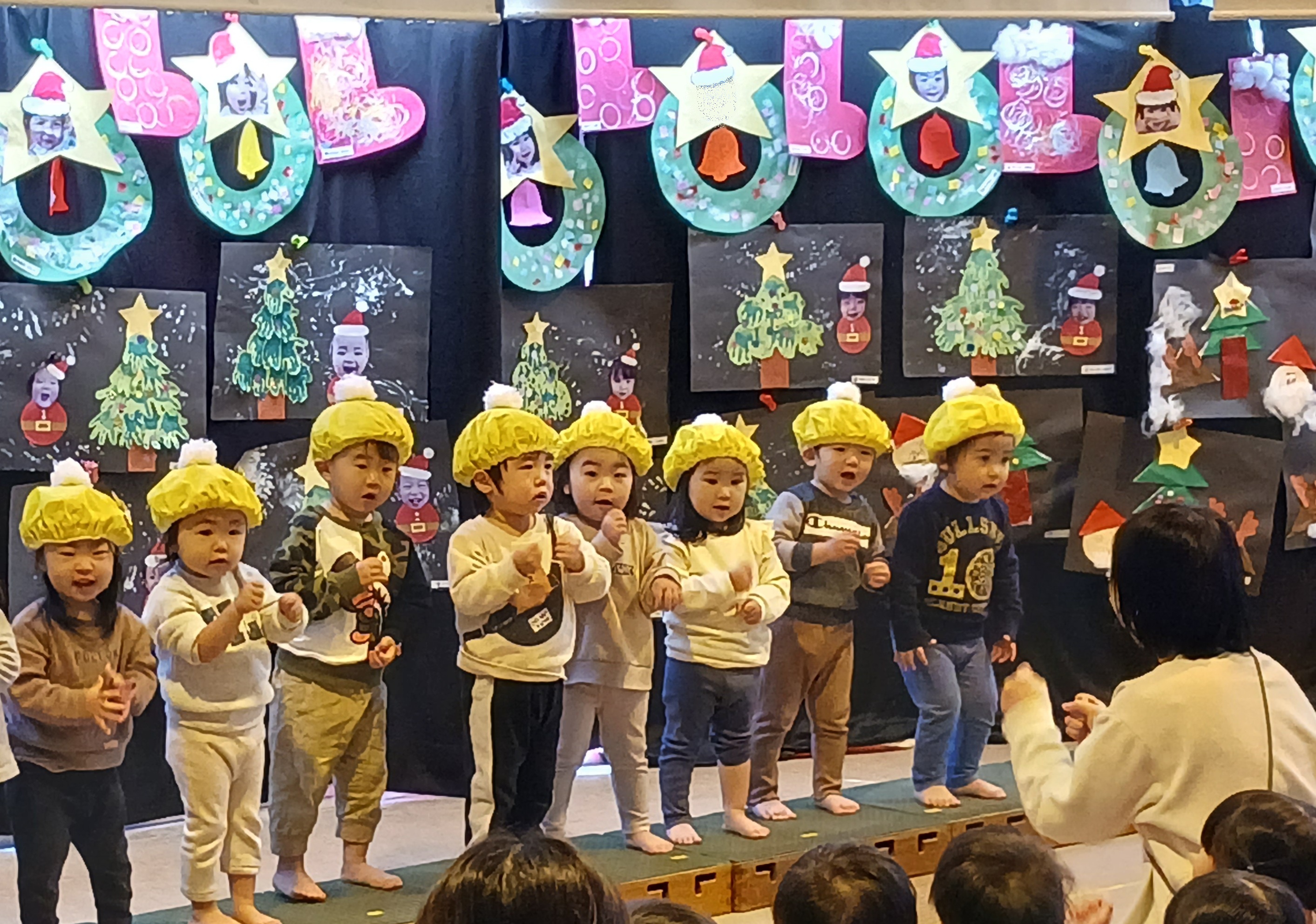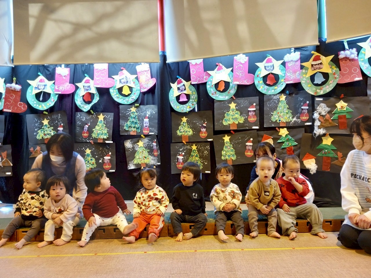 0・1・2歳児クラスが集まって、1階ホールでクリスマス会を楽しみました♪