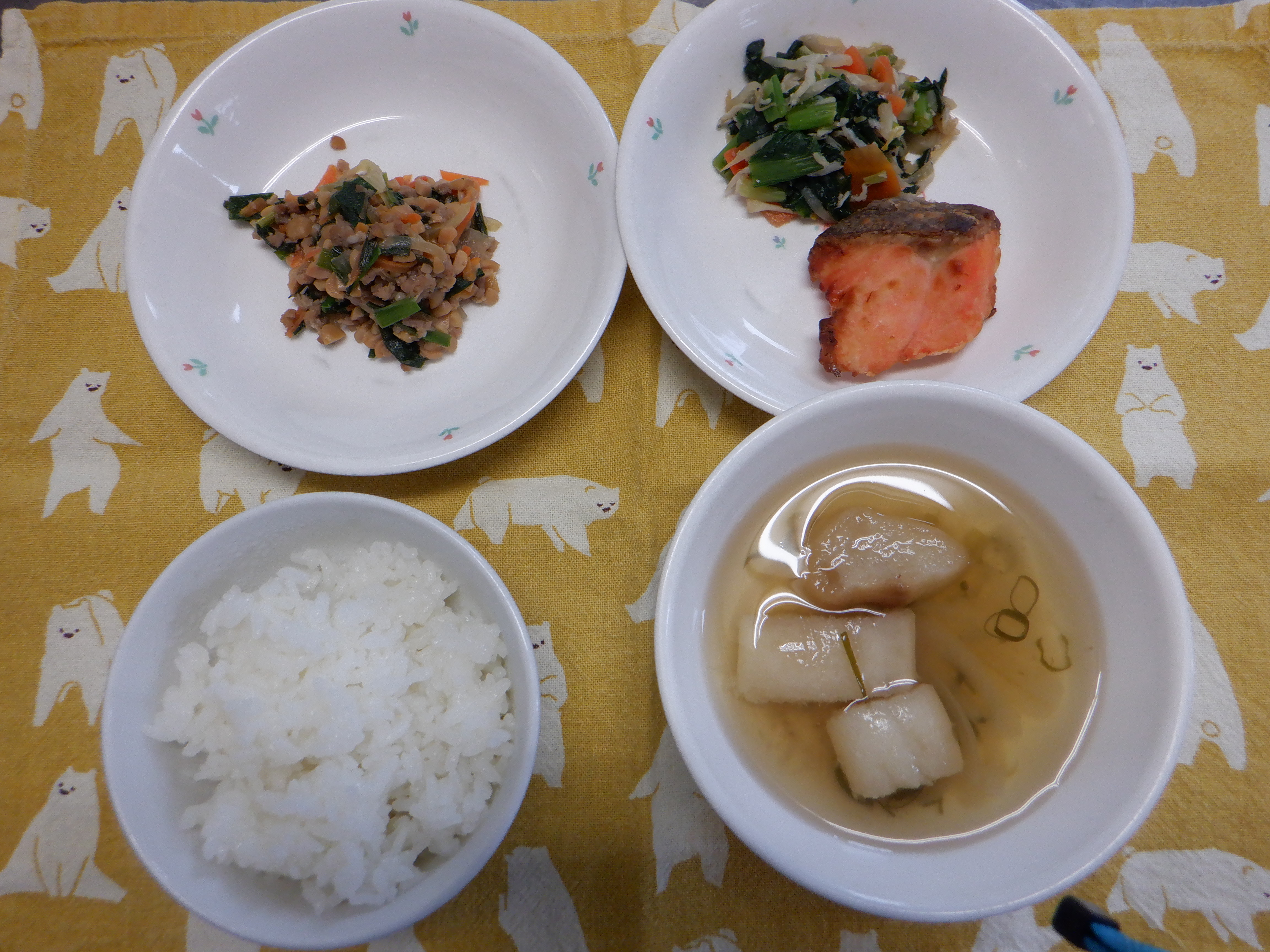 ご飯・鮭の竜田焼き・スタミナ納豆