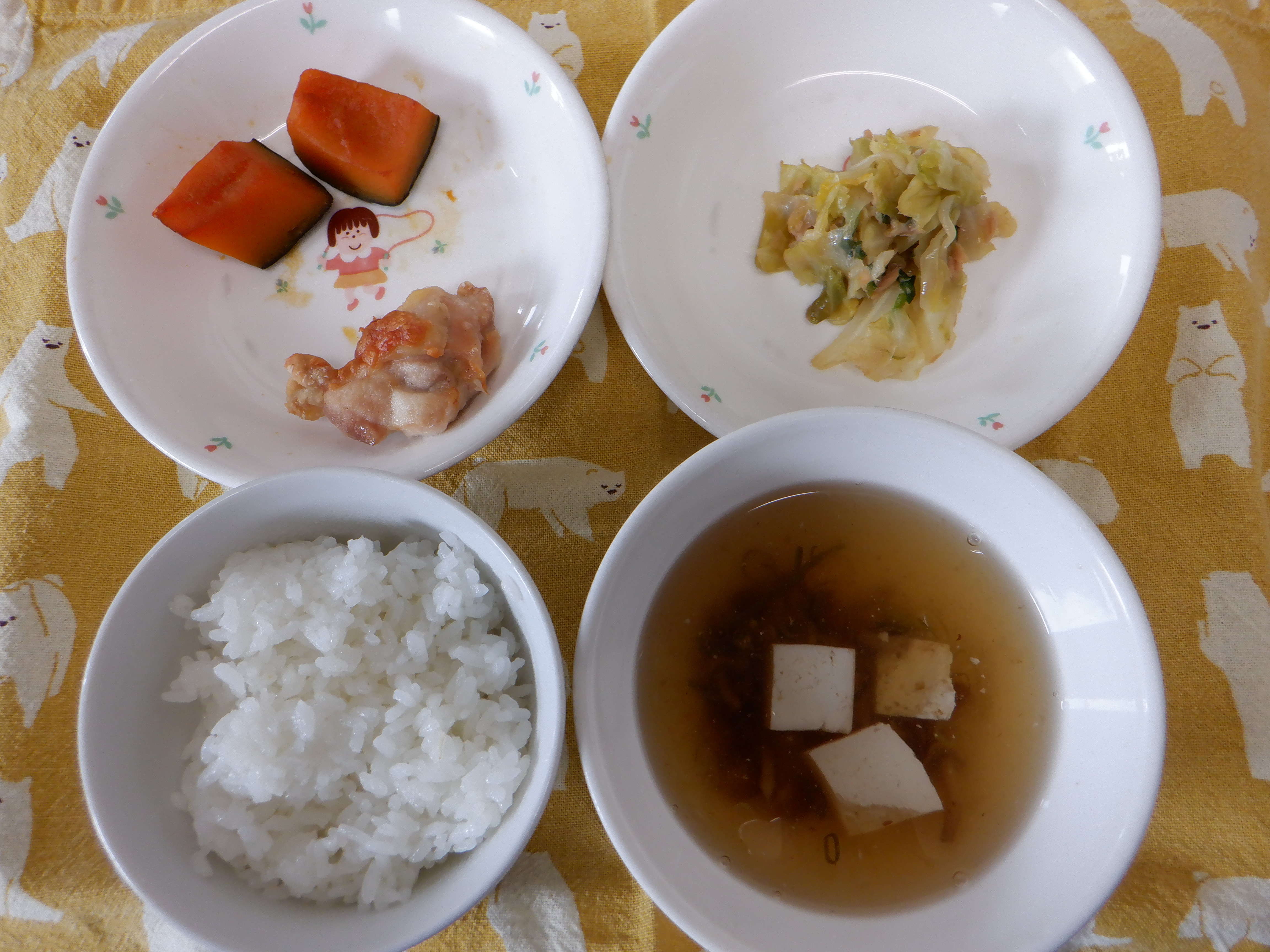 かぼちゃの甘煮・豆腐となめこのすまし汁